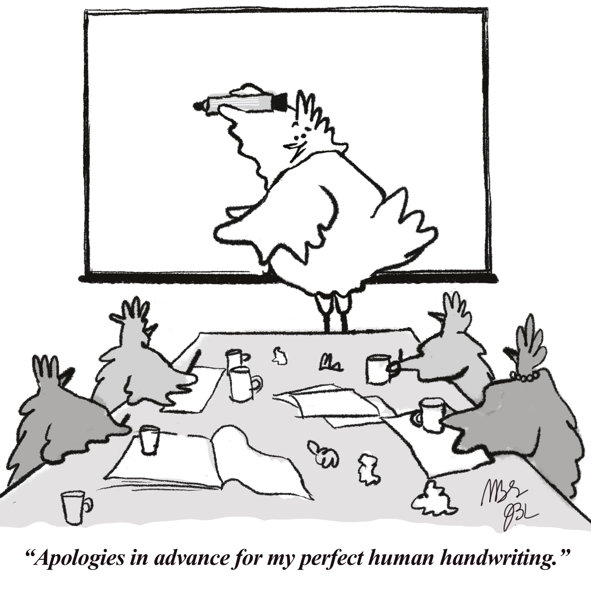 Occasionally, Julia collaborates with her illustrator sister, Margaret Bensfield Sullivan. The blend of Margaret’s artistic talent and Julia’s deranged ideas have produced cartoons that have the whole world saying “I don’t get it…” and “oh, ok. I think I get it now!”